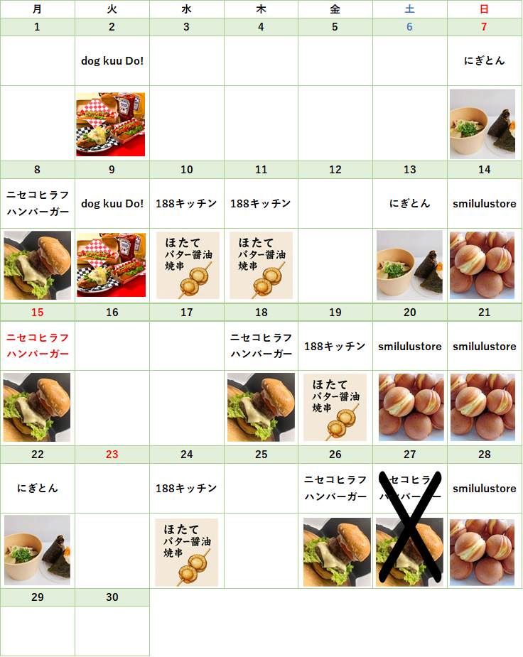 📅出店日:9月8日(月)、15日(月・祝)、18日(木)、26日(金)、27日(土)
