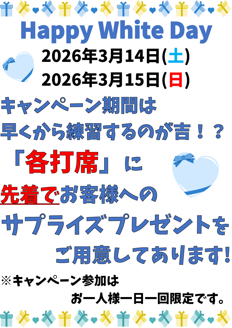 ※プレゼントはご利用の打席分をお取りください。
