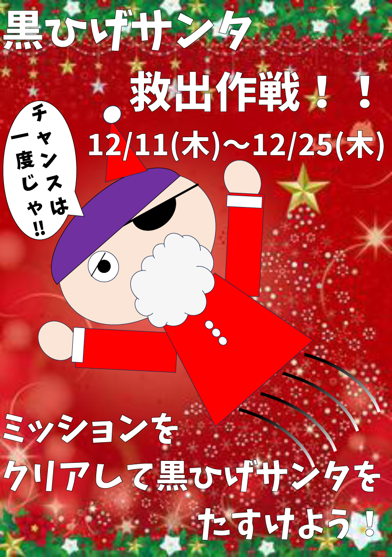 今年のクリスマスは、『黒ひげサンタ救出作戦!!』 を開催します!